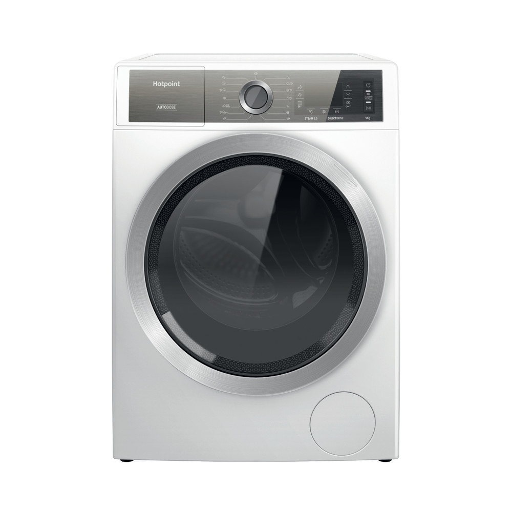 Тази свободностояща пералня с предно зареждане Hotpoint разполага с: особено щедър и голям капацитет от 9,0 кг. Изключителен енергиен клас A. Бърза и енергийно ефективна максимална скорост на центрофугиране от 1400 оборота в минута. Бял цвят.