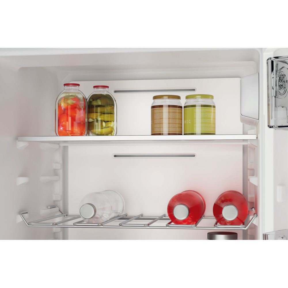 Този хладилник с фризер Hotpoint за вграждане e: висок уред, който отговаря на нуждите на семейството ви. Бял цвят. Стъклени рафтове осигуряват стабилност. Вентилатор, който осигурява равномерен и гладък поток въздух във вътрешността на уреда за подобрена вентилация. Удобно отделение на вратата за сигурно съхранение на вашите бутилки.